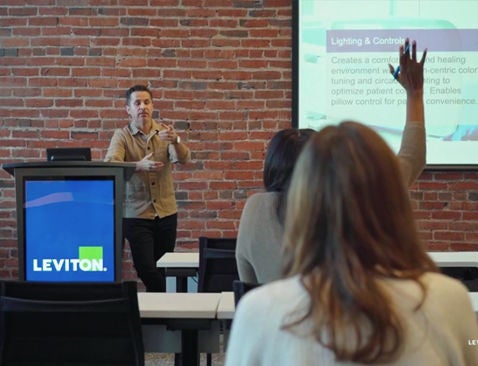 La série de formation avantage pour l’entrepreneur ci-dessus est disponible dans les sessions de formation en personne résidentielles, commerciales et industrielles dans les centres d’expérience Leviton Live.